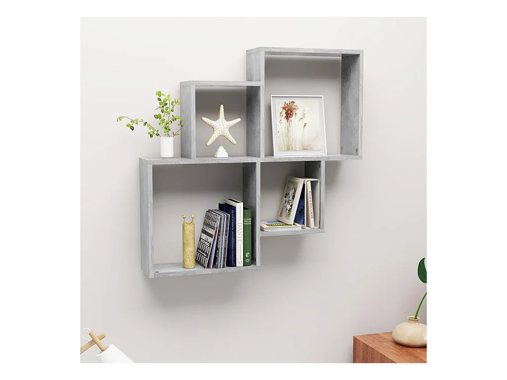 mensole a cubo da parete in legno ingegnerizzato grigio cemento
