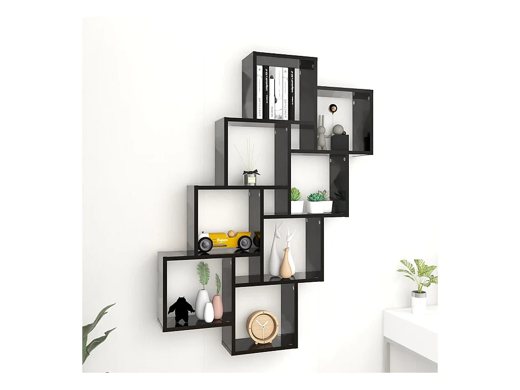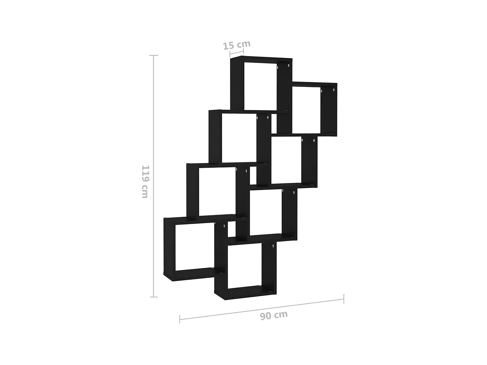 Mensola da parete a cubo nero 90x15x119 cm in legno ingegnerizzato
