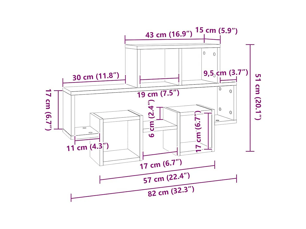 Mensole da parete cubo 4 pz Sonoma grigio 100x15x30 cm Legno