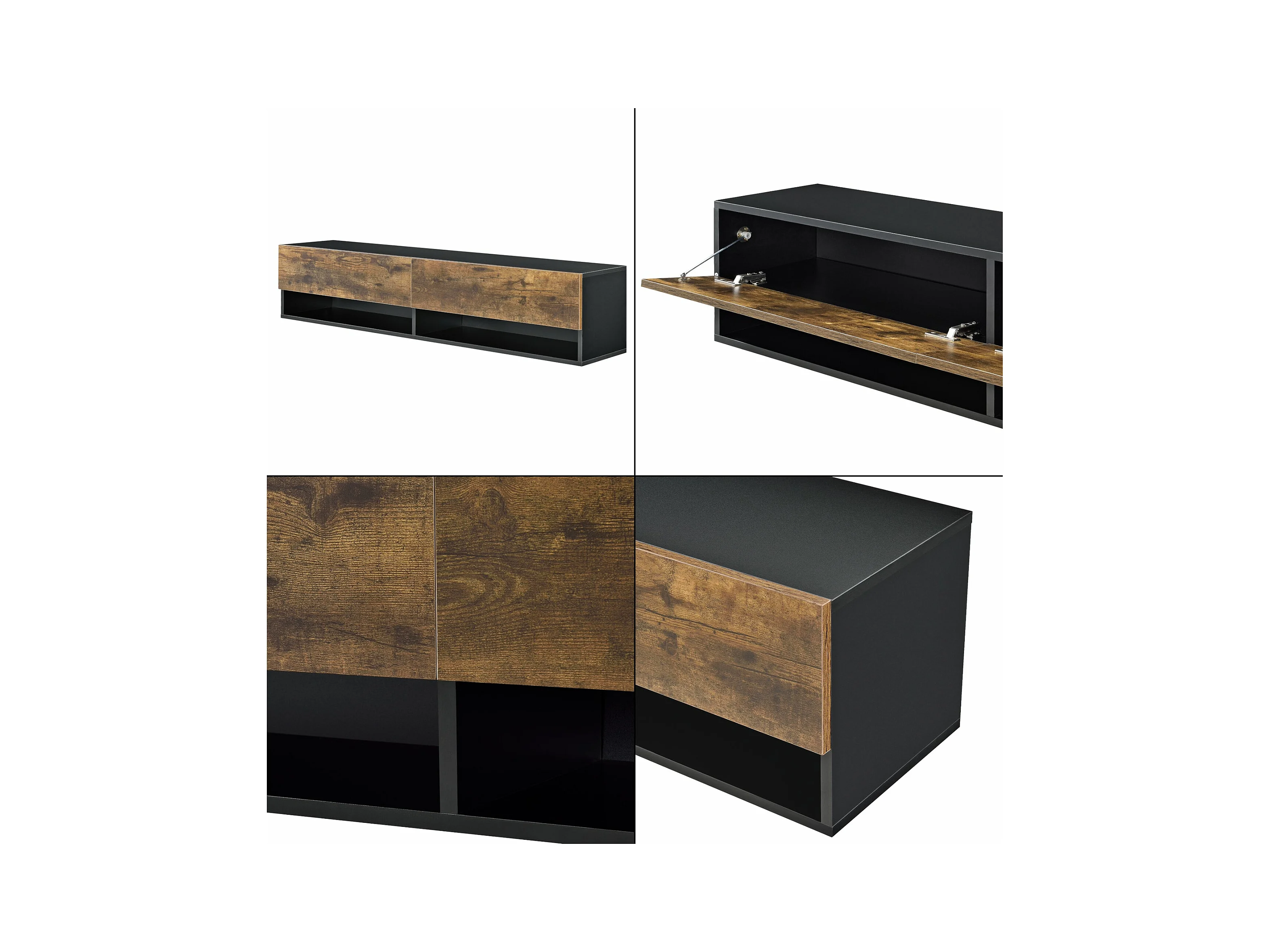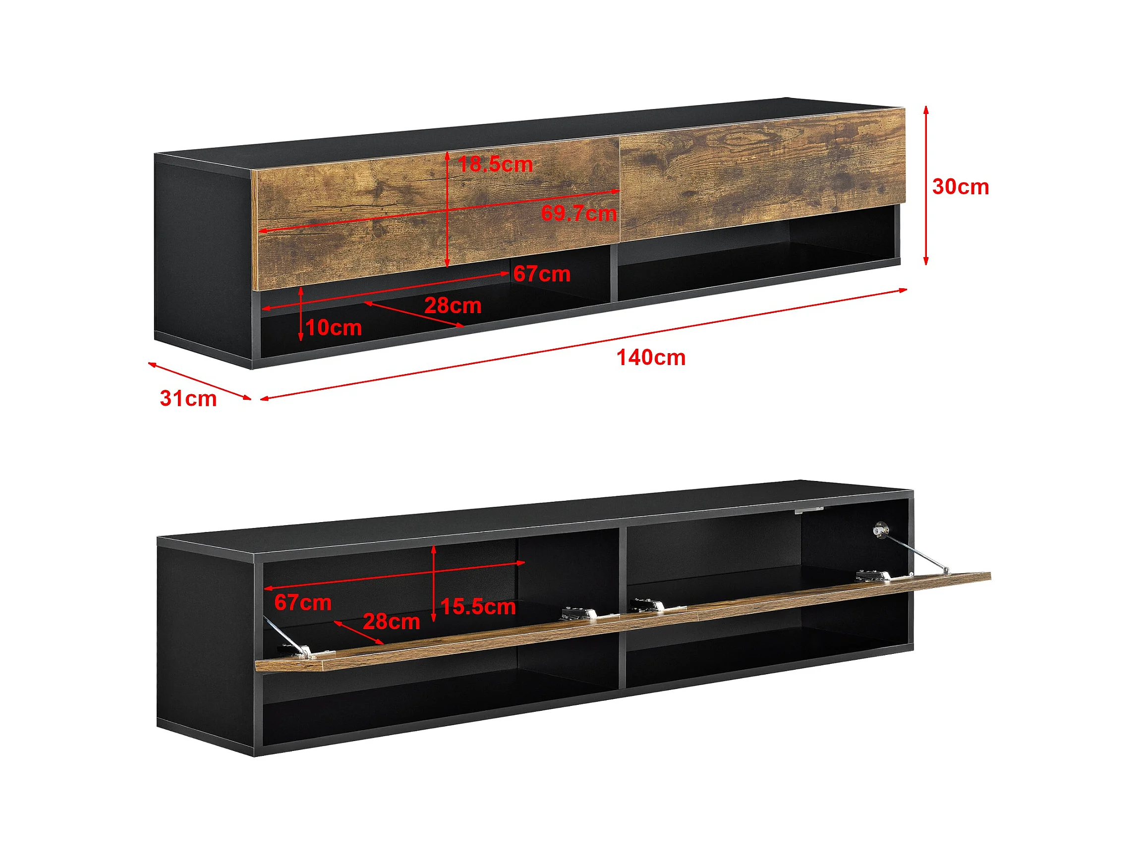 Mensola da parete di design con 2 ante porta TV portaoggetti 140 cm rovere moro nero 03_0005185