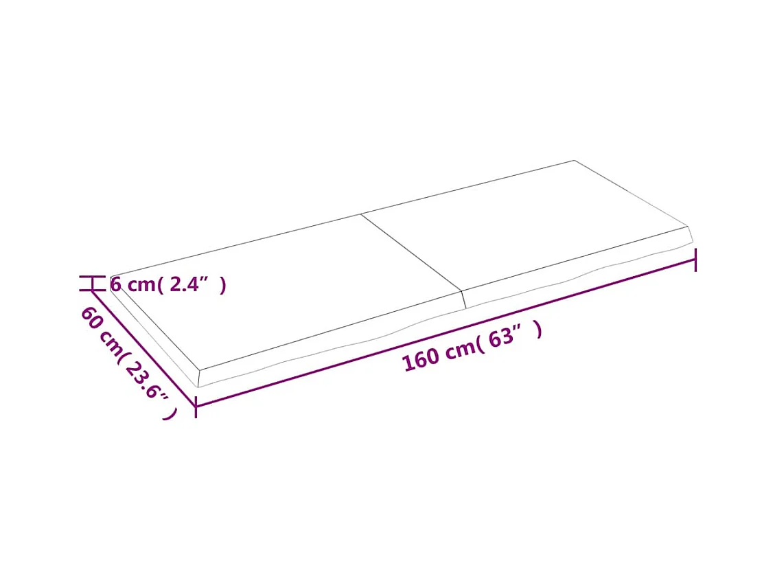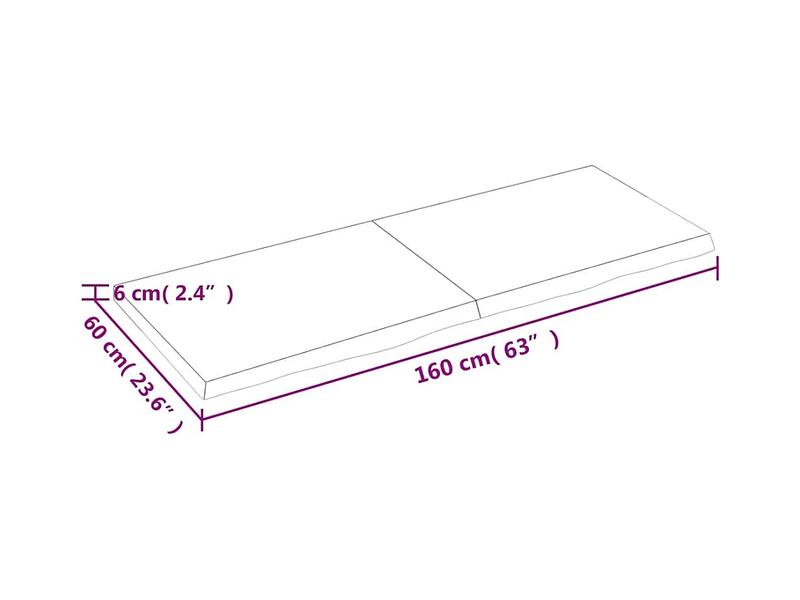 Mensola da parete 40x60x(2-4) cm in legno massello di rovere non trattato