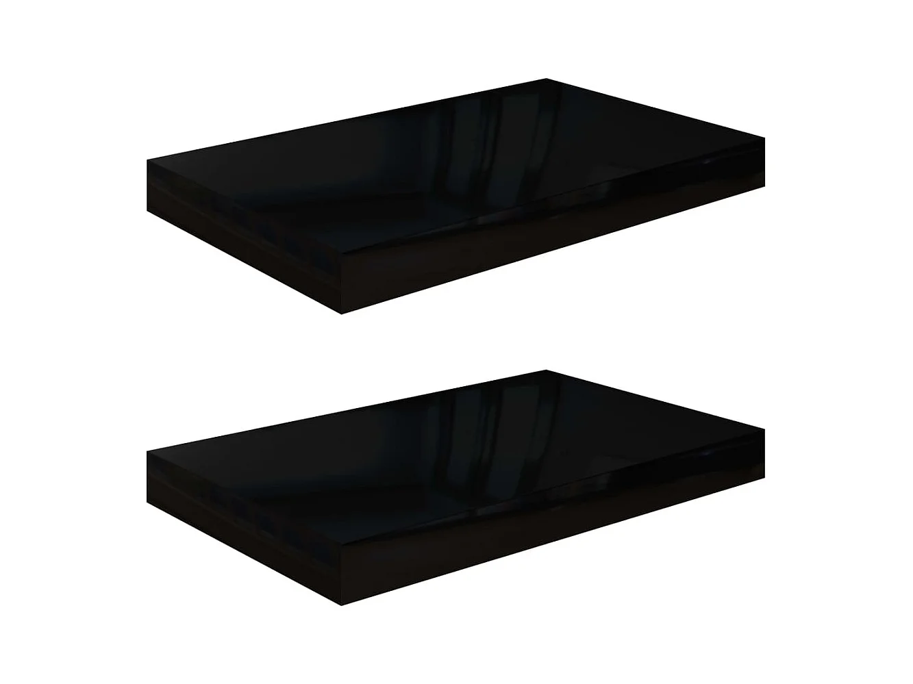 Mensola sospesa da parete 2 pezzi Nero lucido 50x23x3,8 cm MDF