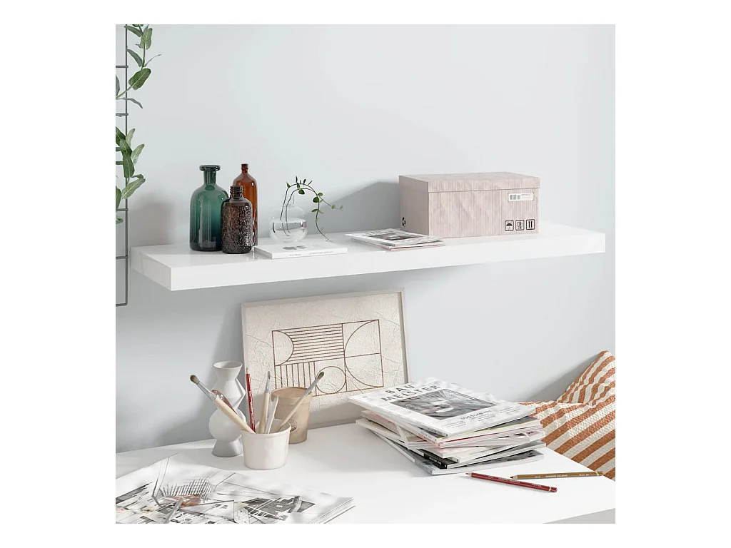 Mensola da parete sospesa Bianco lucido 90x23,5x3,8 cm MDF