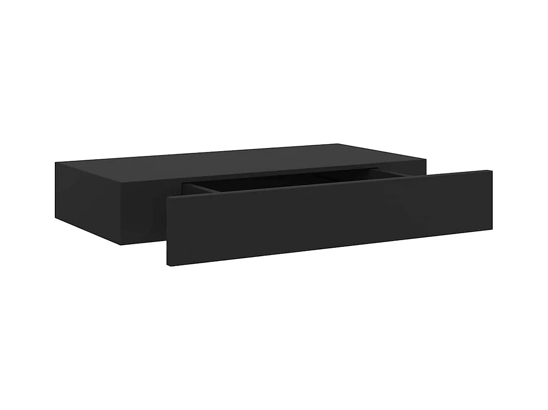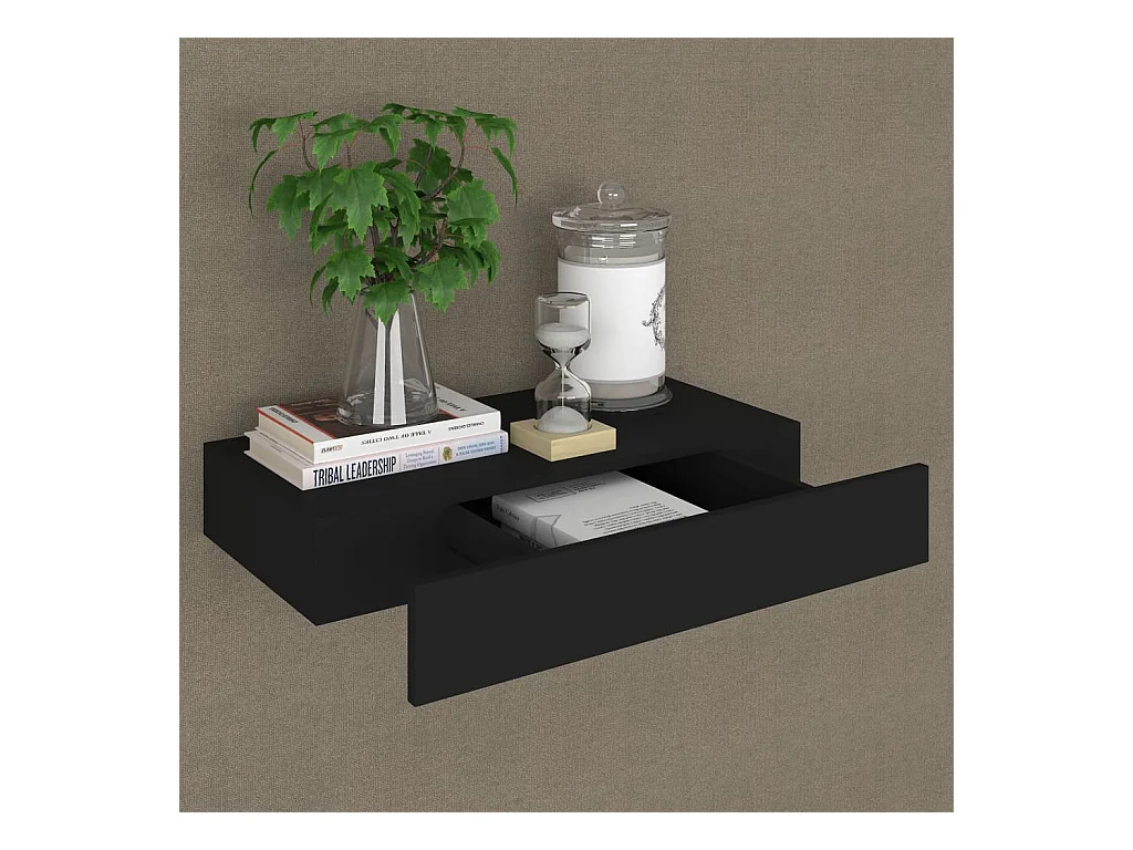 Mensola da parete sospesa con cassetto Nero 48x25x8 cm
