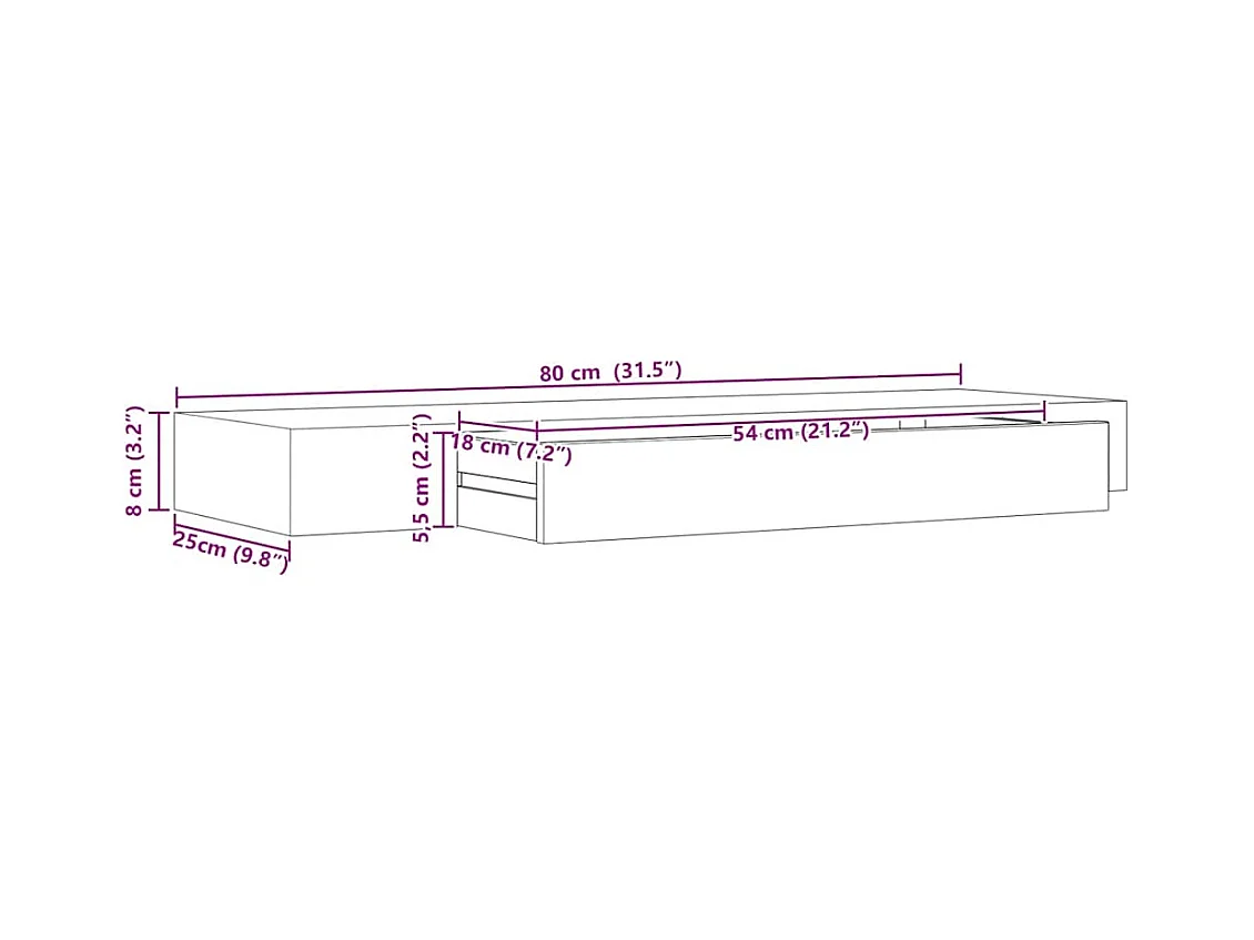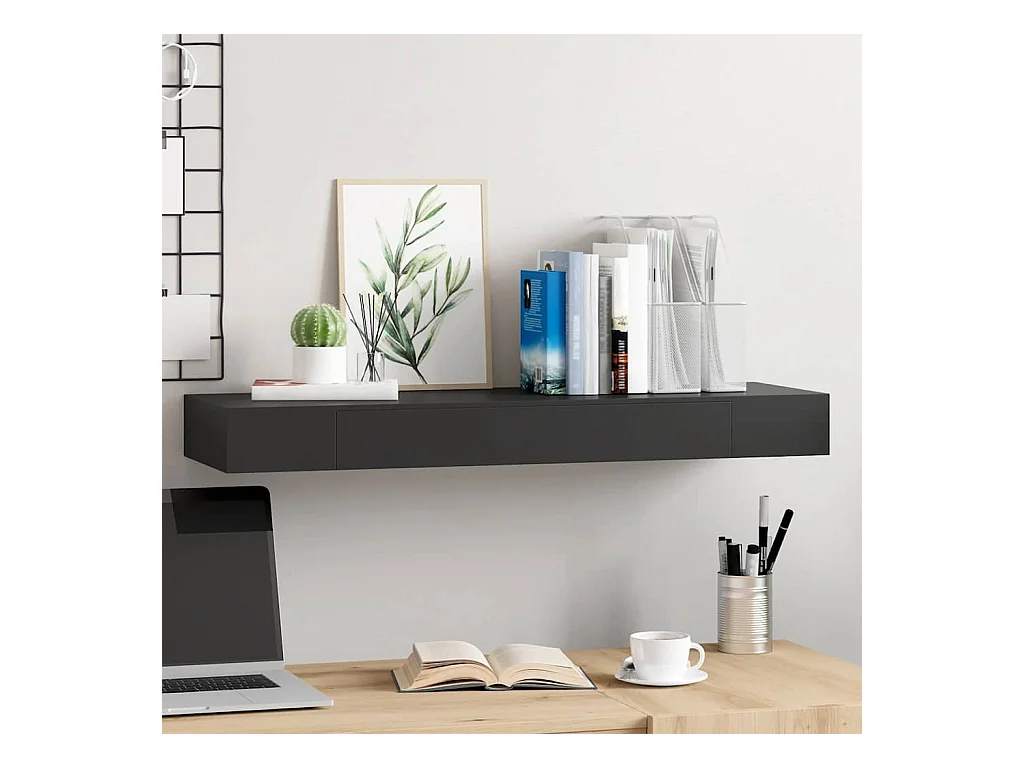 Mensola da parete sospesa con cassetto Nero 80x25x8 cm