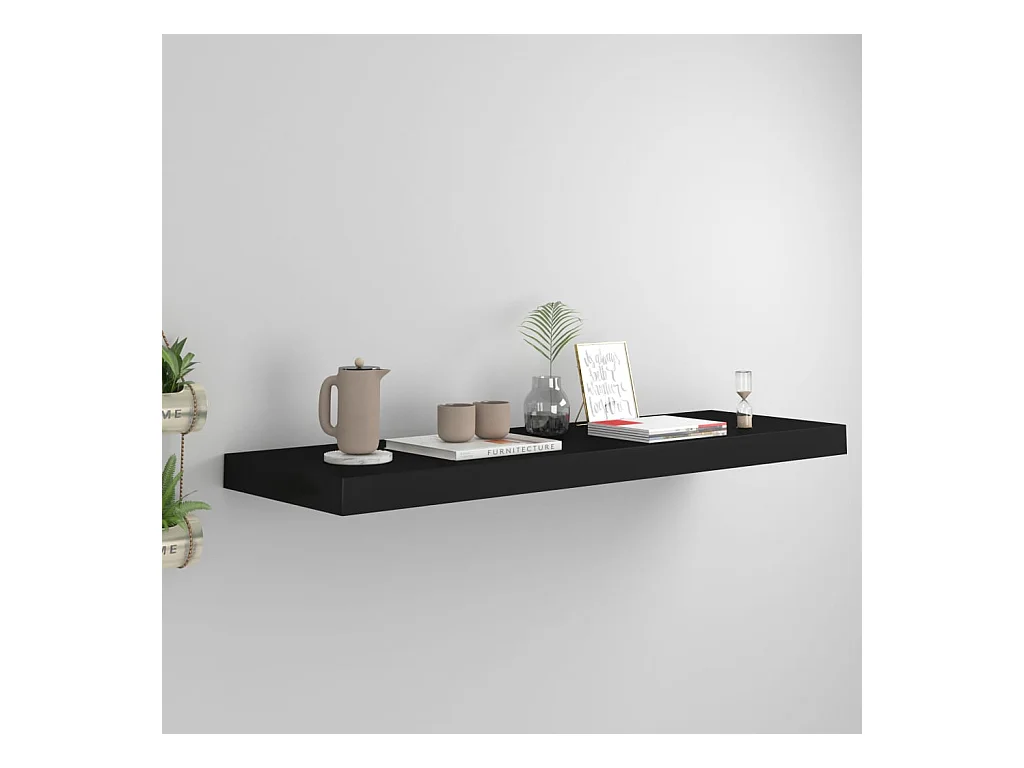 Mensola da parete sospesa nera 80x23,5x3,8 cm MDF