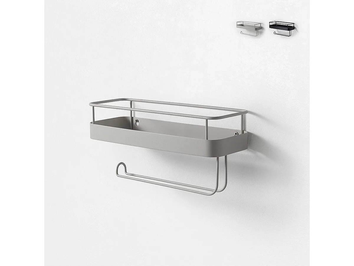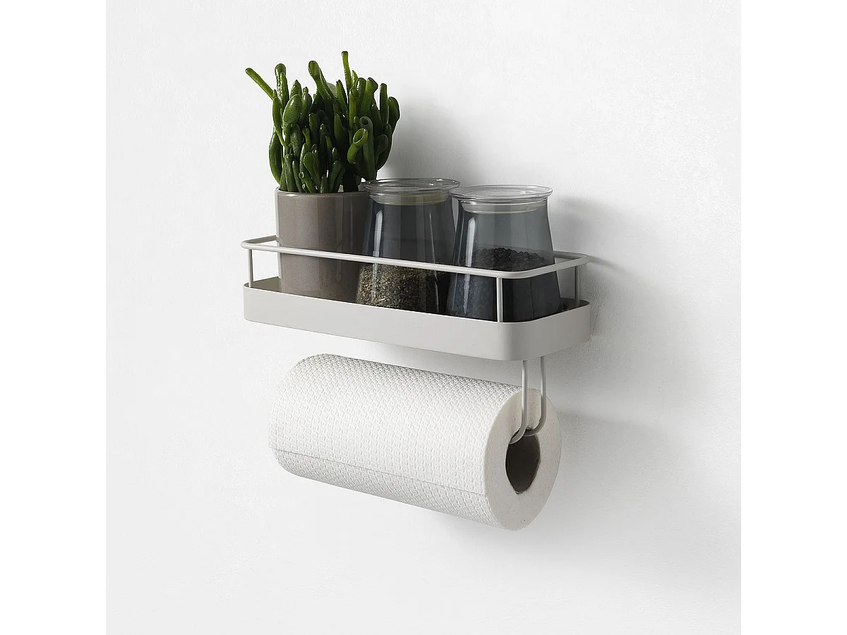 Mensola in metallo con portarotolo da cucina Toon - Bianco