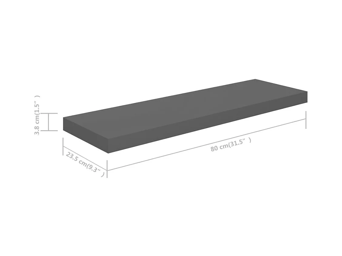 Mensola sospesa da parete 2 pezzi Grigio lucido 80x23,5x3,8 cm MDF