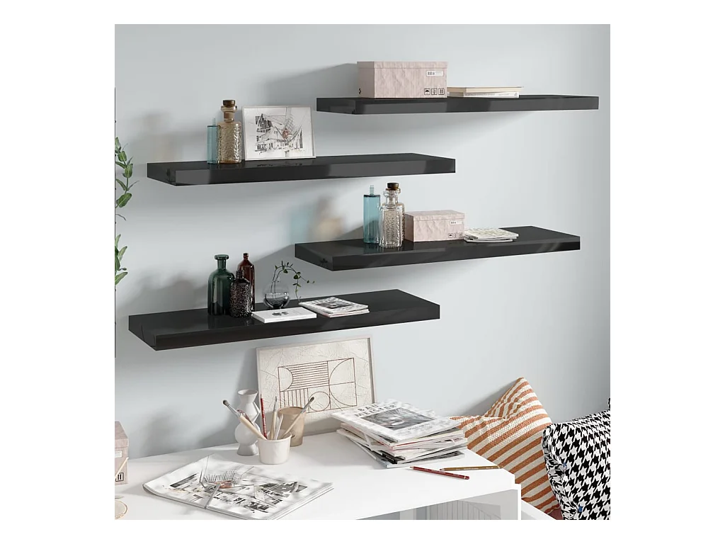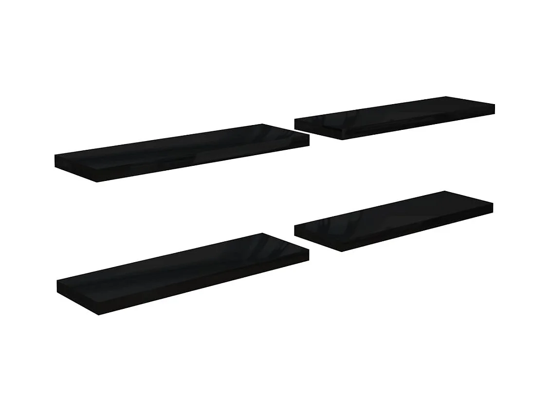 Mensola da parete sospesa 4 pezzi Nero lucido 90x23,5x3,8 cm MDF