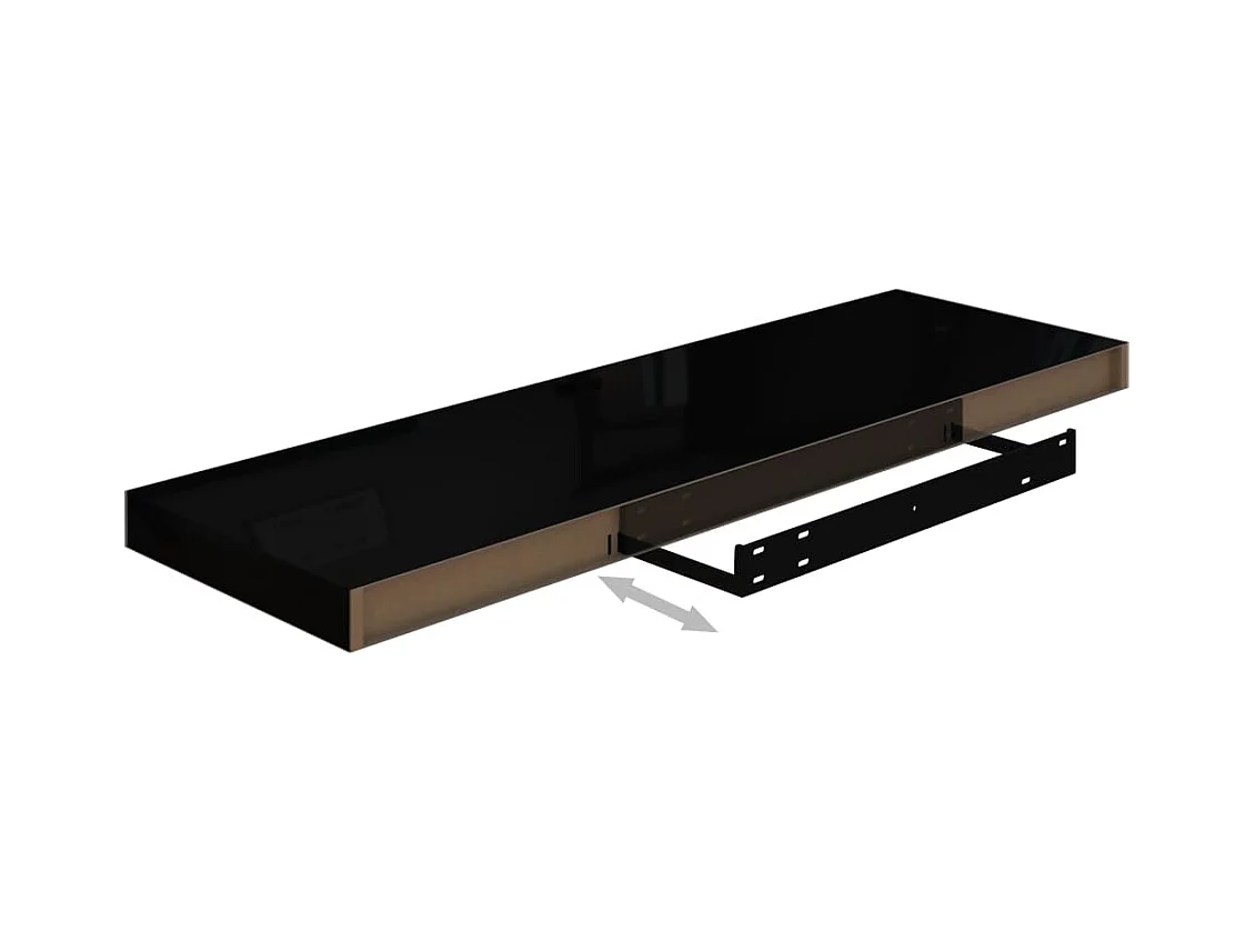 Mensola da parete sospesa 2 pezzi Nero lucido 120x23,5x3,8cm MDF