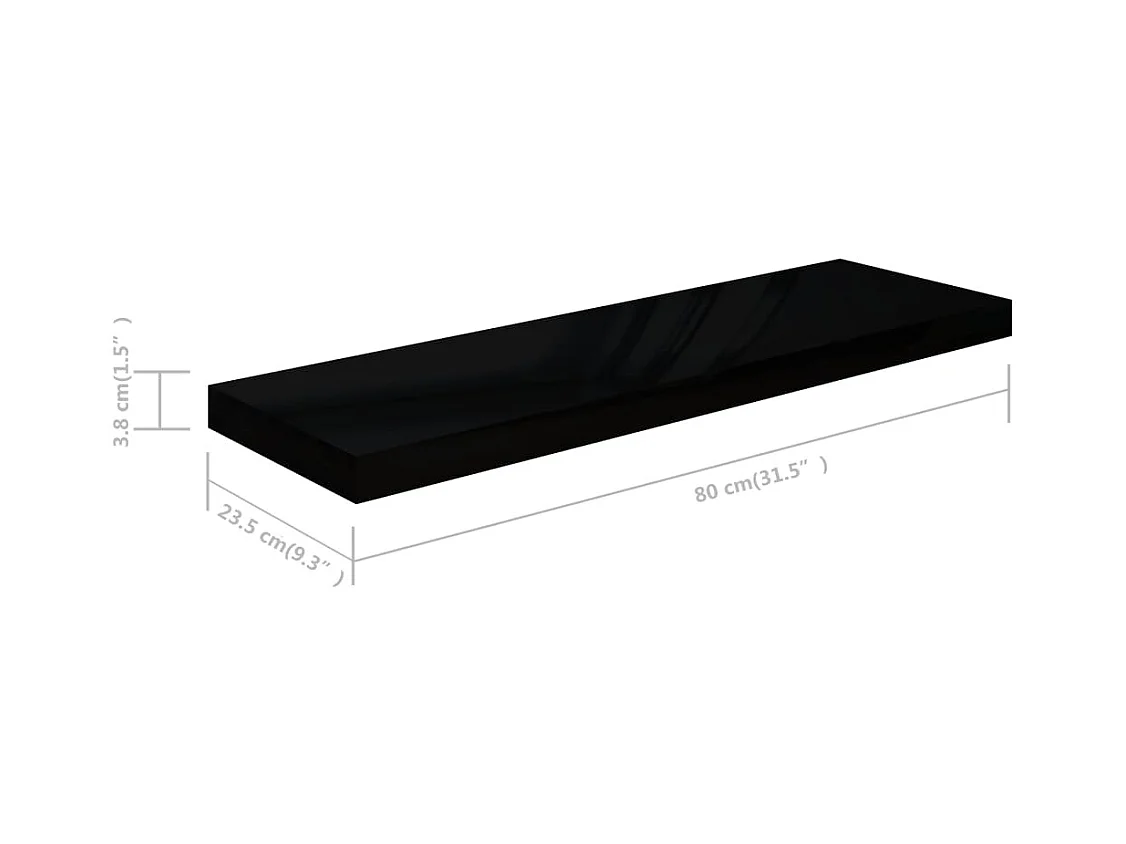 Mensola sospesa da parete 4 pezzi Nero lucido 80x23,5x3,8 cm MDF