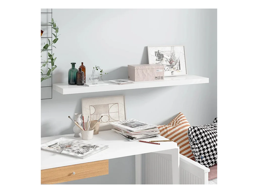 Mensola da parete galleggiante 2 pezzi bianco lucido 120x23,5x3,8 cm MDF
