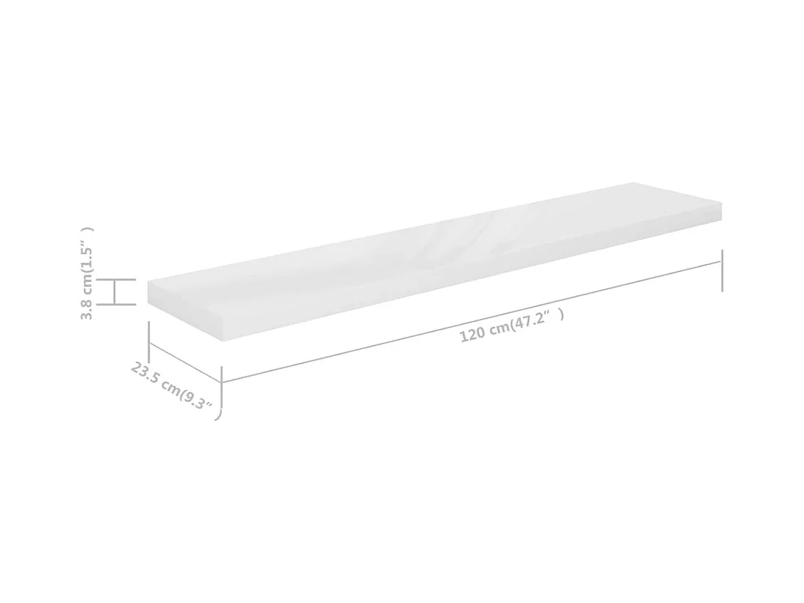Mensola sospesa da parete Bianco lucido 120x23,5x3,8 cm MDF