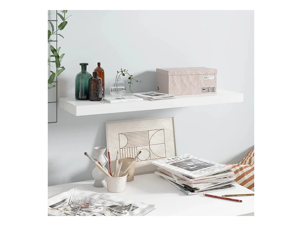 Mensola sospesa da parete Bianco lucido 80x23,5x3,8 cm MDF