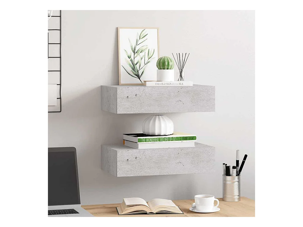 Mensole a cassetti da parete 2 pz Grigio cemento 60x23,5x10 cm MDF