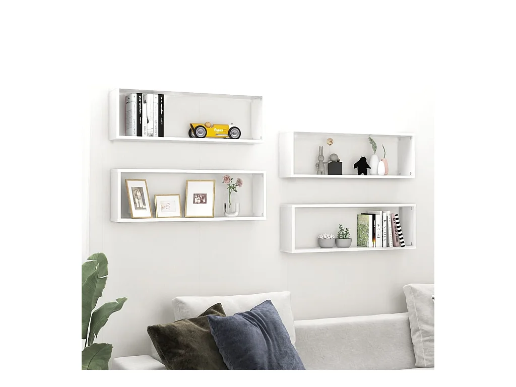 Mensole da parete 4 pz Bianco lucido 80x9x3 cm