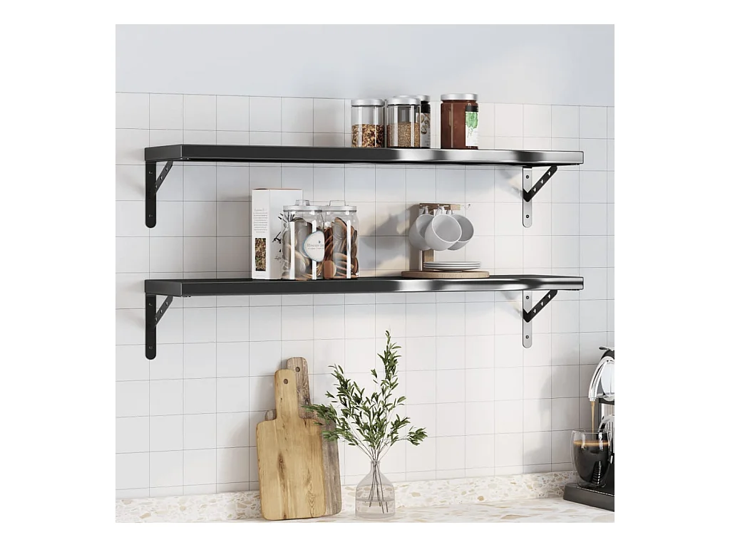 Mensole a Muro 2 pz 100x40 cm Nero in Acciaio Inossidabile