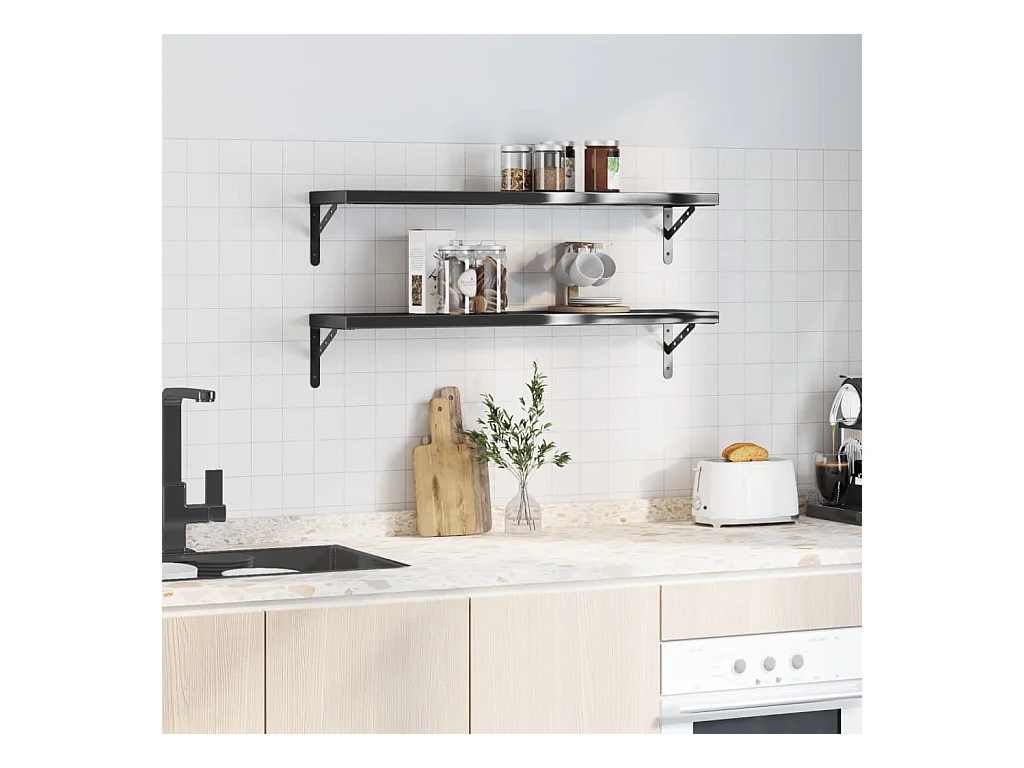 Mensole a Muro 2 pz 100x23,5 cm Nero in Acciaio Inossidabile