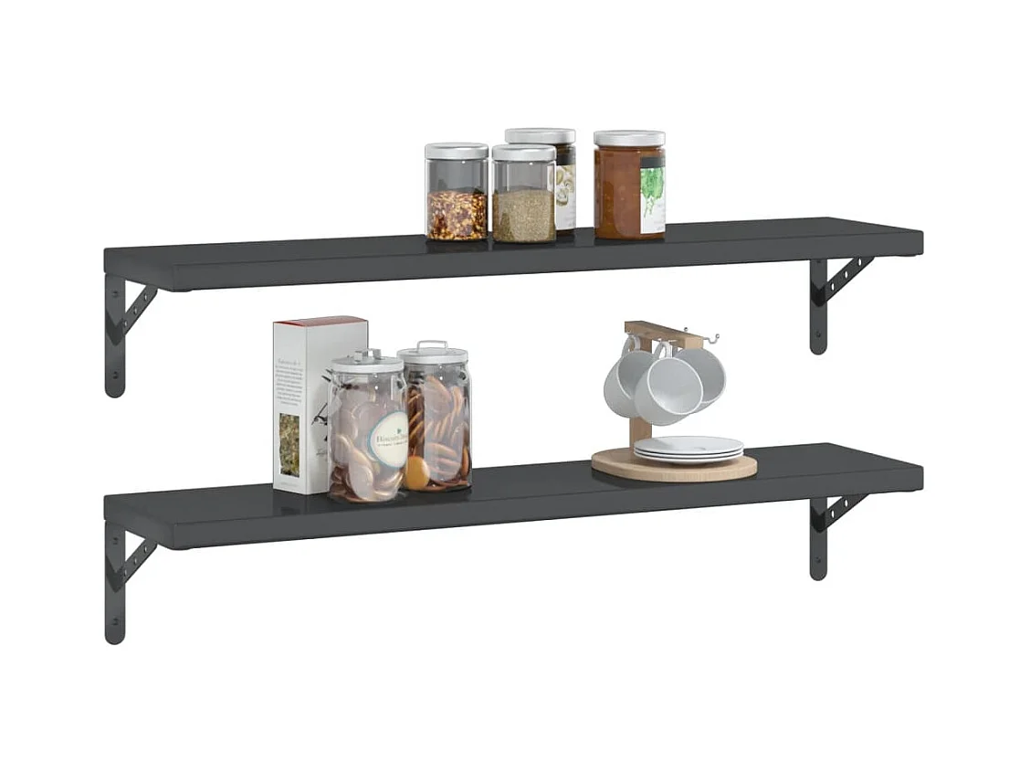 Mensole a Muro 2 pz 75x23,5x3 cm Nero in Acciaio Inossidabile