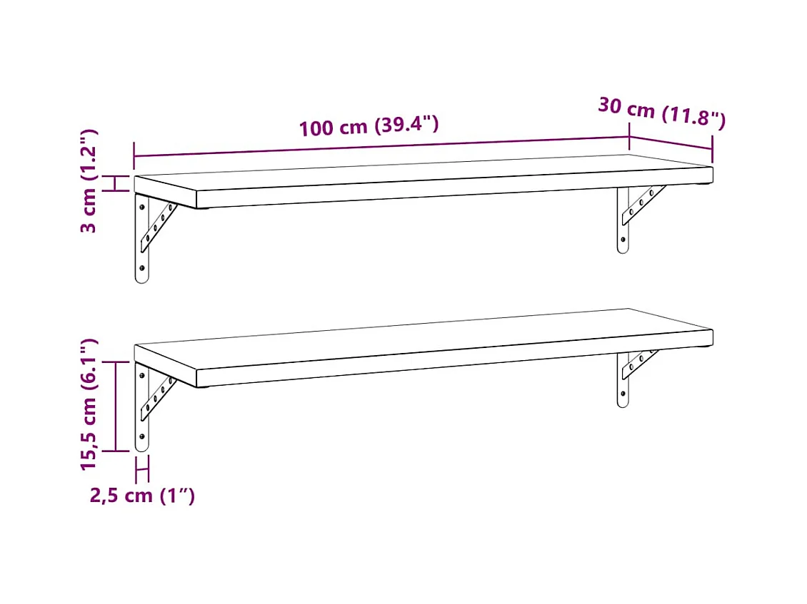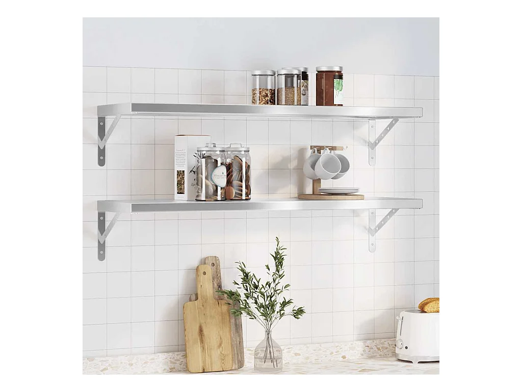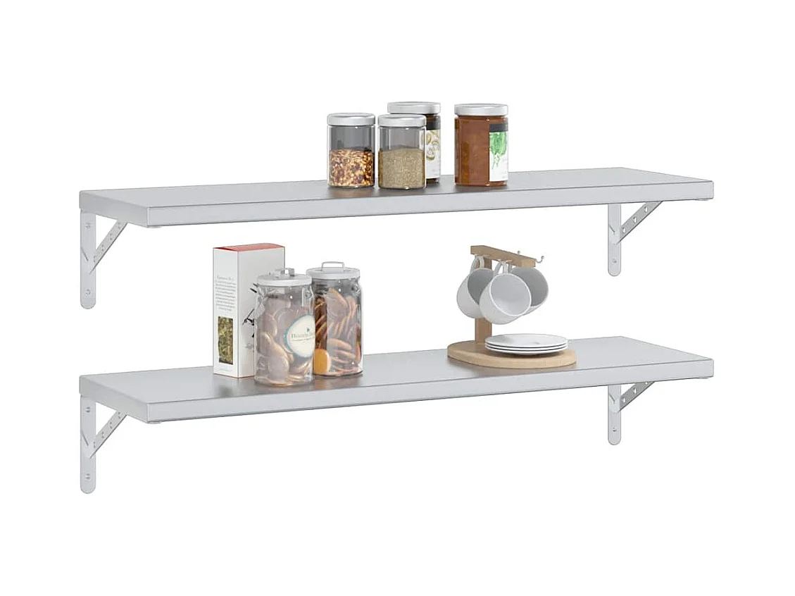 Mensole a Muro 2pz 100x23,5x3cm Argento in Acciaio Inossidabile