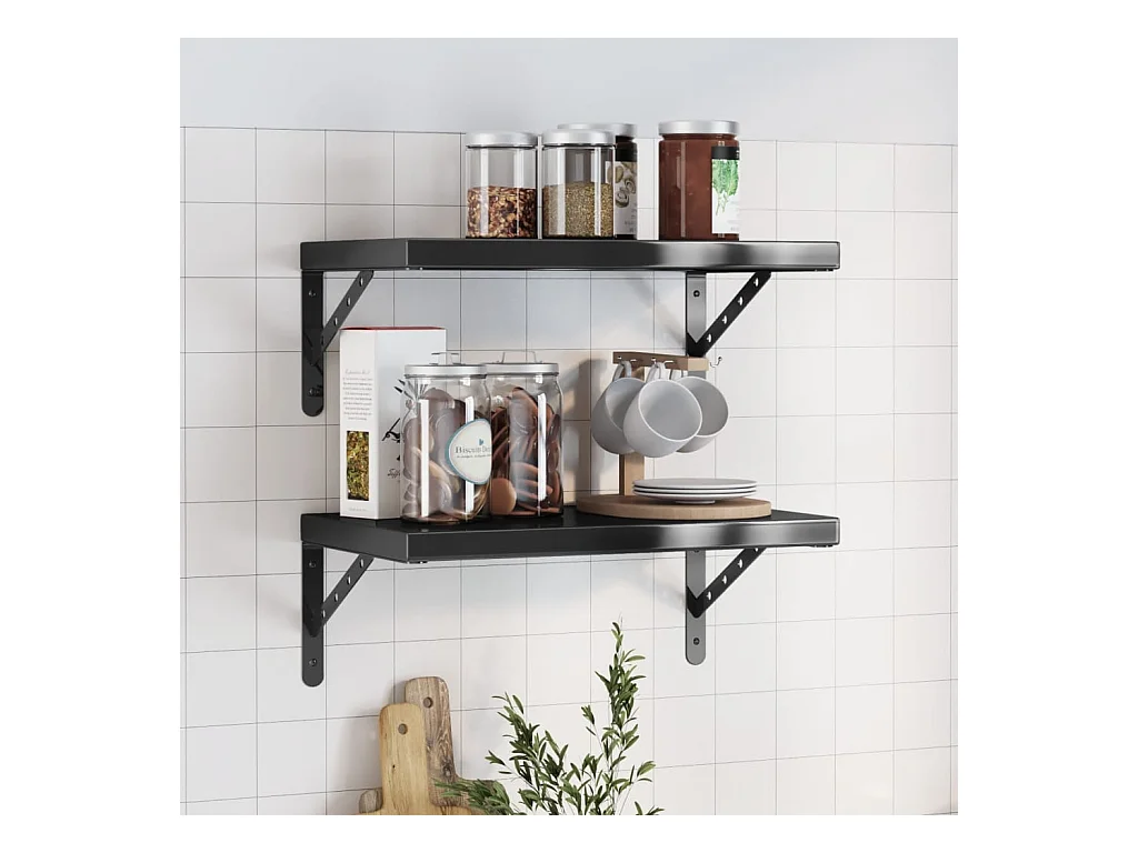 Mensole a Muro 2 pz 50x23,5 cm Nero in Acciaio Inossidabile