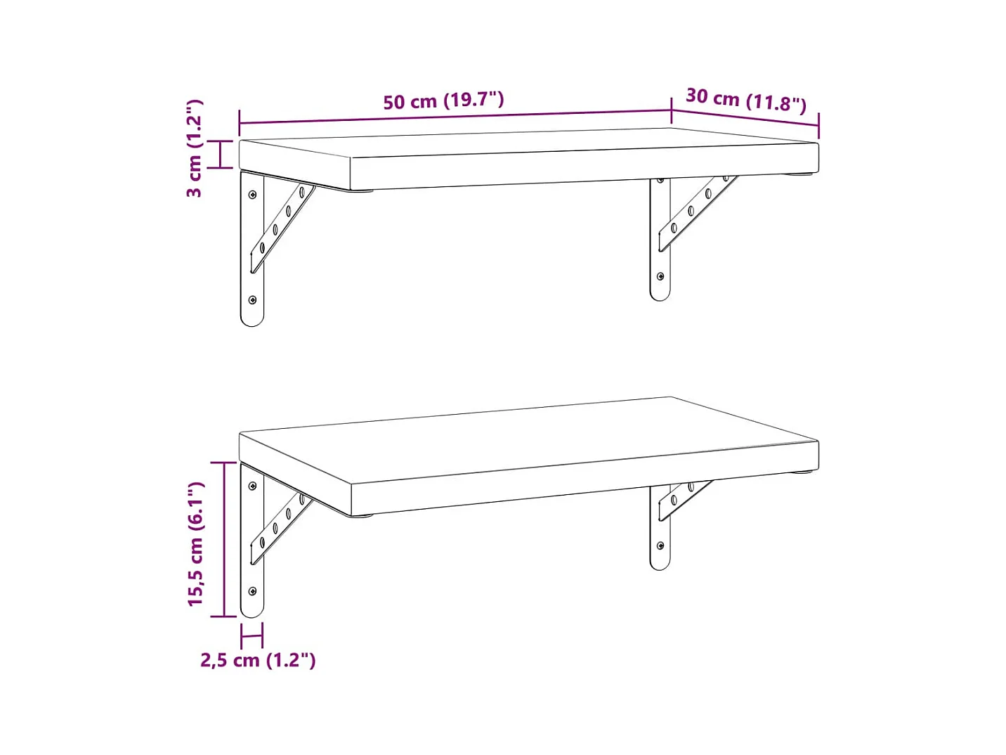 Mensole a Muro 2 pz 50x30x3 cm Nero in Acciaio Inossidabile