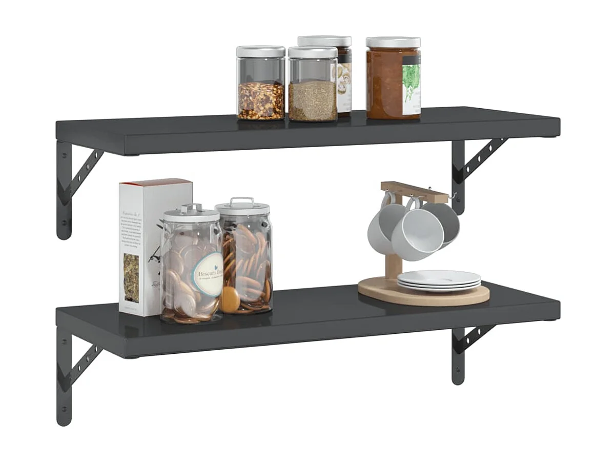 Mensole a Muro 2 pz 75x40x3 cm Nero in Acciaio Inossidabile
