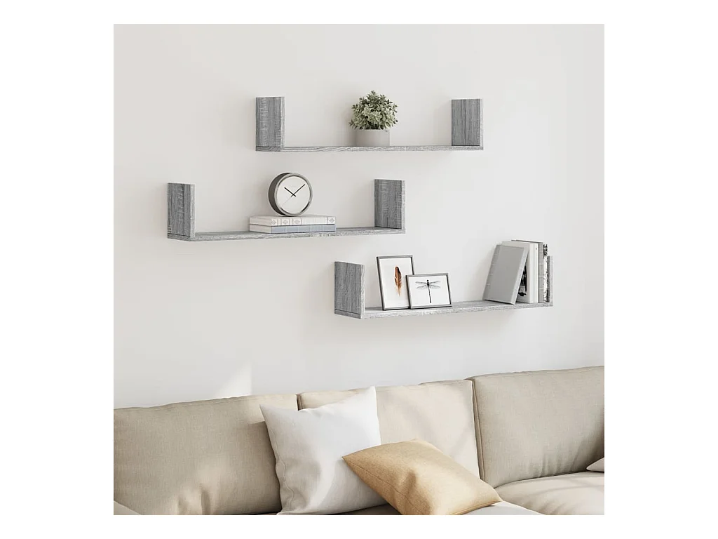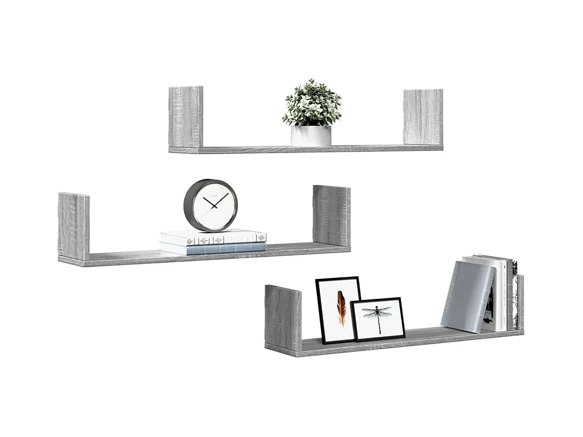 Mensole a Parete 3pz Grigio Sonoma 80x18x18 cm in Truciolato