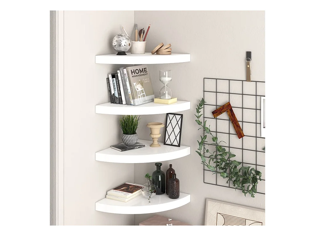 Mensole angolari galleggianti 4 pezzi bianco lucido 35x35x3,8 cm MDF