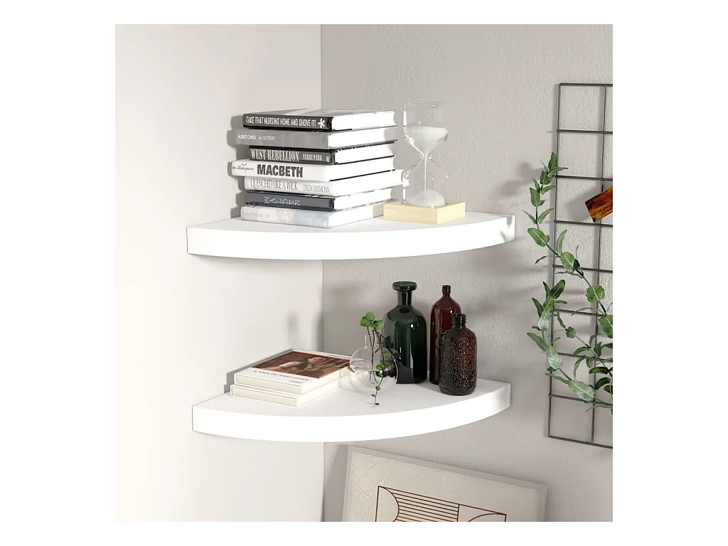 Mensole angolari sospese 2 pezzi Bianco 35x35x3,8 cm MDF