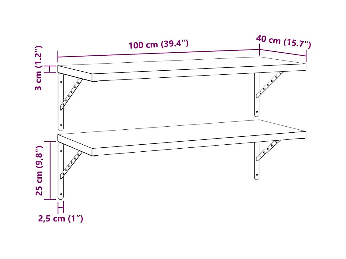 Mensole da parete 2 pezzi 100x40 cm acciaio inox nero