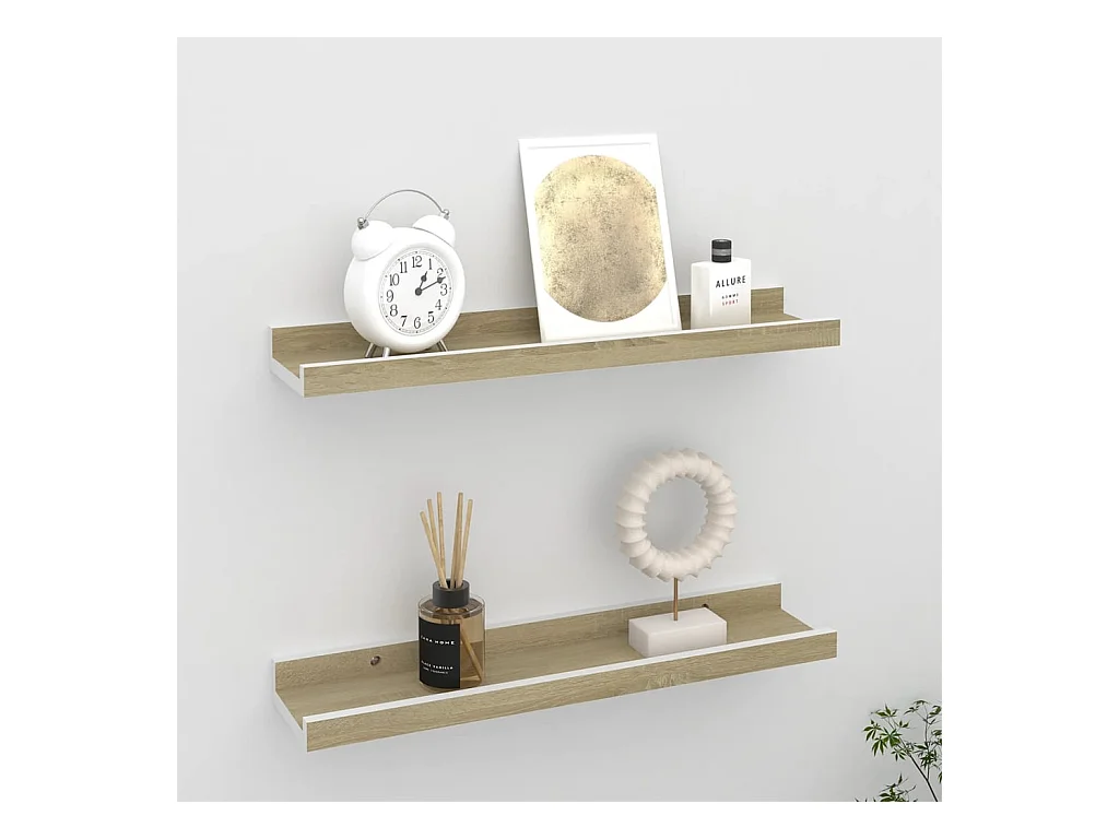 Mensole da parete 2 pezzi bianco e rovere sonoma 100x9x3 cm