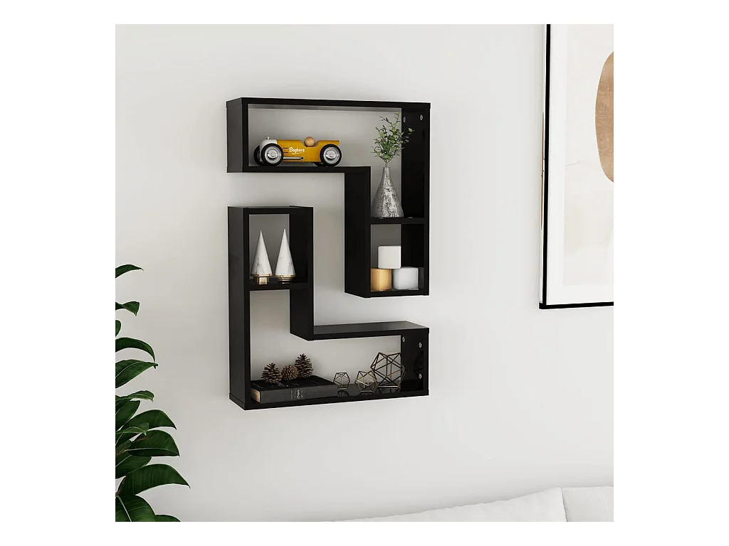 Mensola da parete sospesa Nero lucido 50x23x3,8 cm MDF