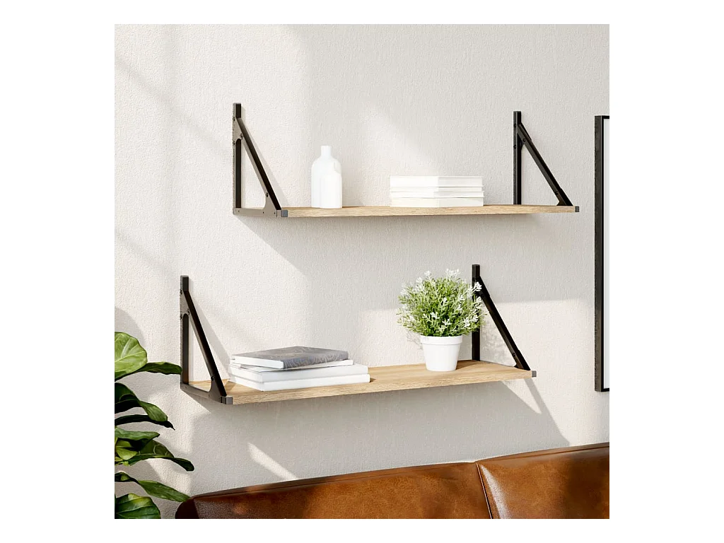 Mensole da parete 2 pezzi rovere sonoma 60x25x25,5 cm