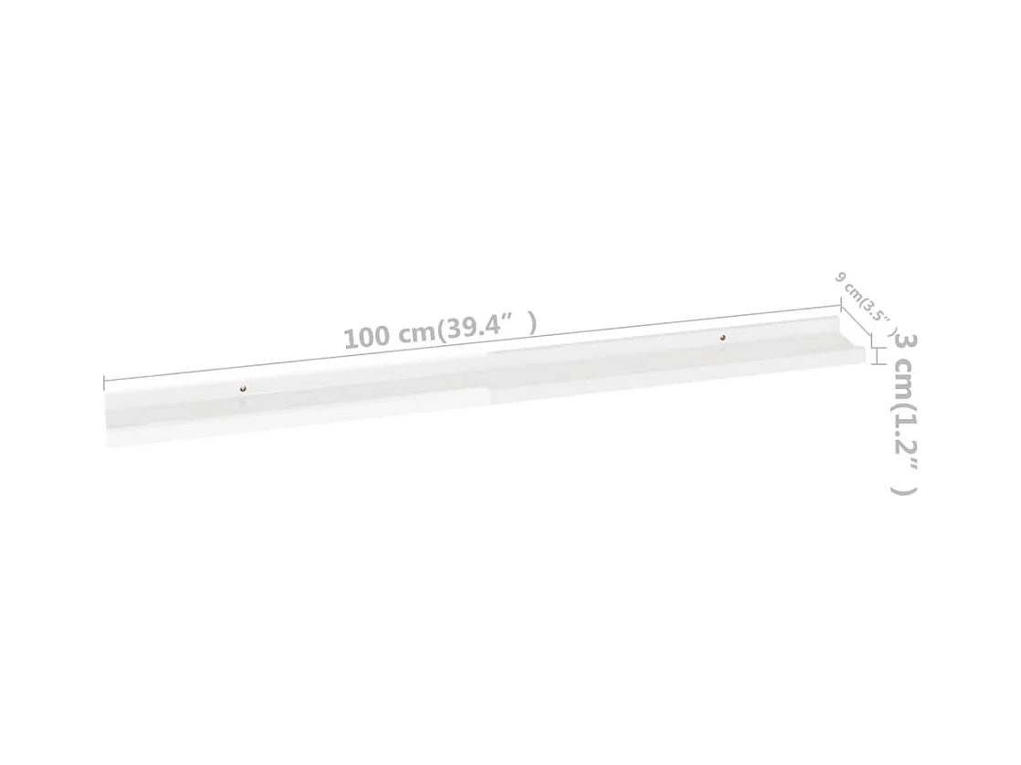Mensole da parete 2 pz Bianco lucido 100x9x3 cm