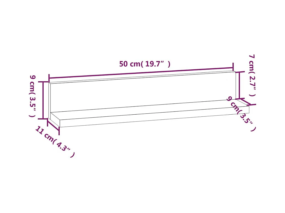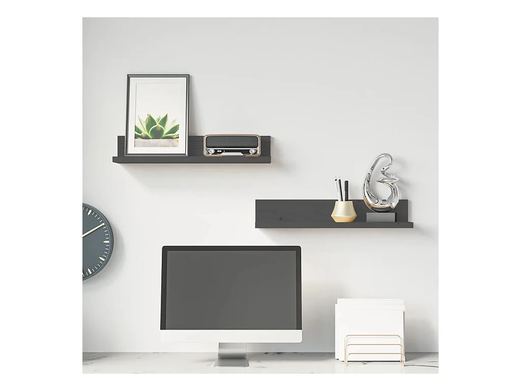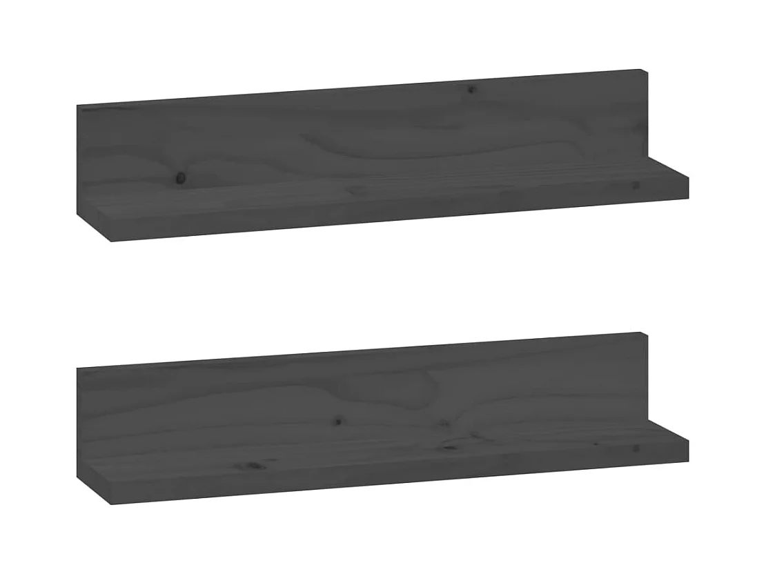 Mensole da Parete 2 pz Grigio 50x11x9cm Legno Massello di Pino
