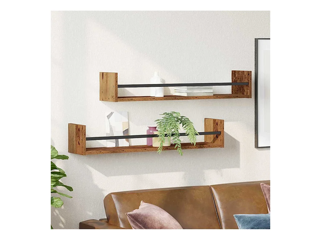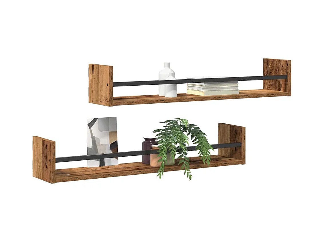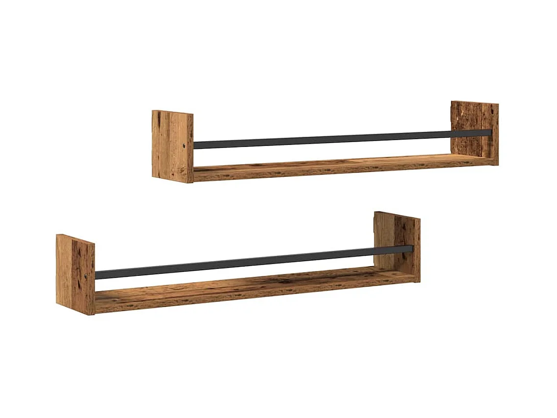 Mensole da parete 2 pz Legno vecchio 80x16x14 cm Legno ricostituito
