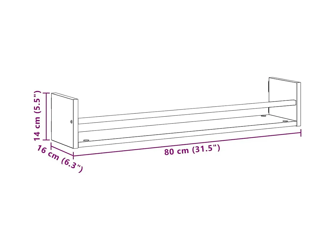 Mensole da parete 2 pz Rovere 80x16x14 cm Legno trattato