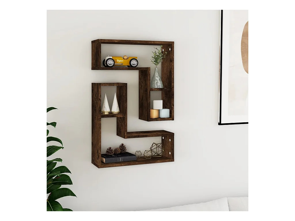 Mensole da parete espositive in rovere affumicato, 3 pezzi, in legno ingegnerizzato
