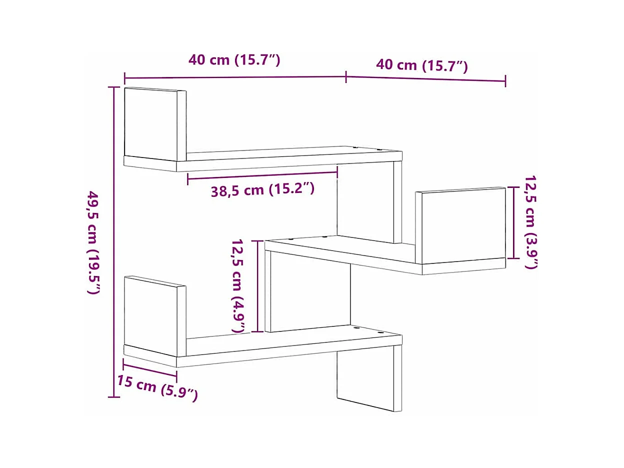 Mensole da parete 2 pz Rovere nero 40x40x49,5 cm Legno ingegnerizzato