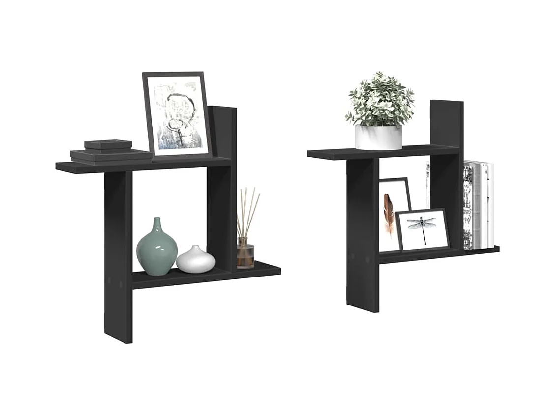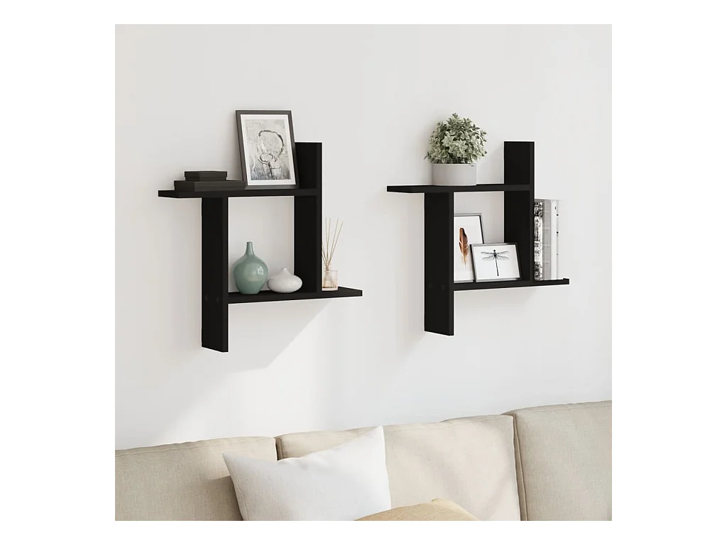Mensole da Parete 2pz Nere 38x12x38 cm in Truciolato