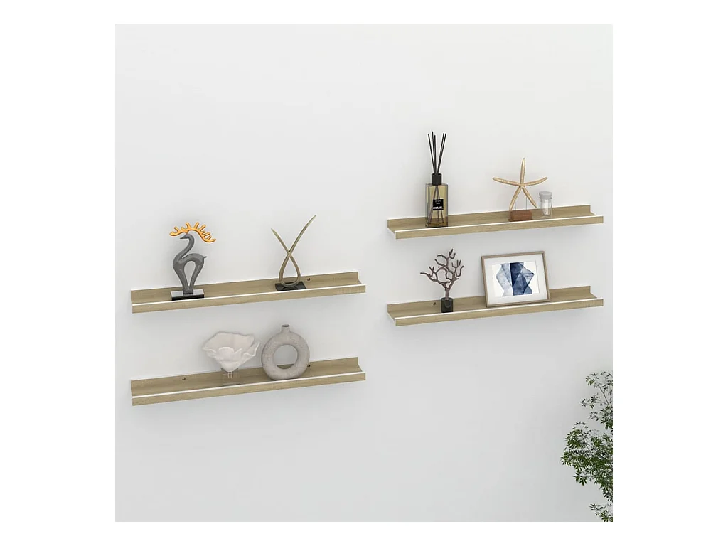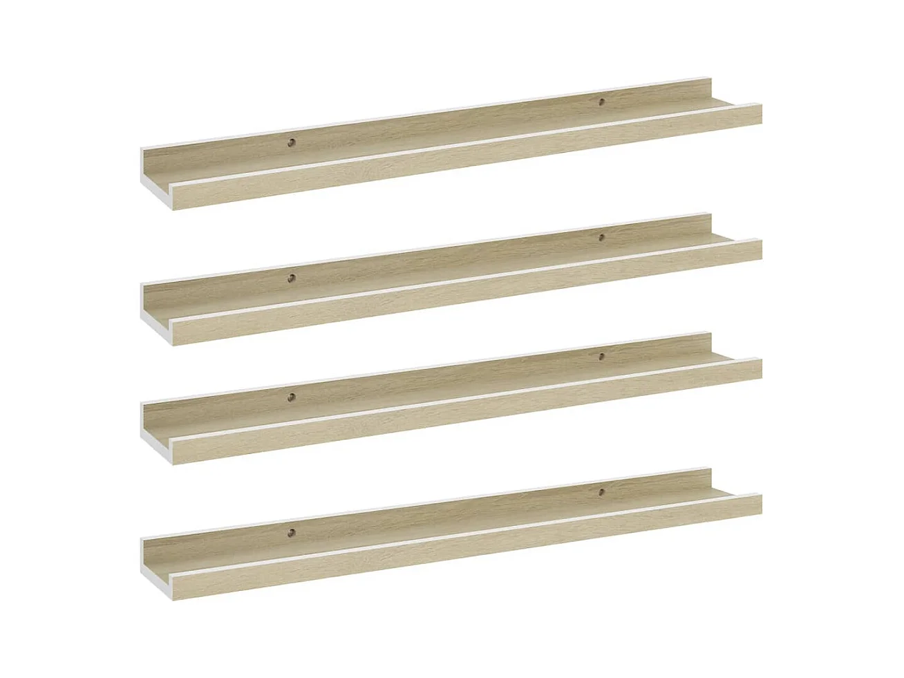 Mensole da parete 4 pezzi bianco e rovere sonoma 60x9x3 cm