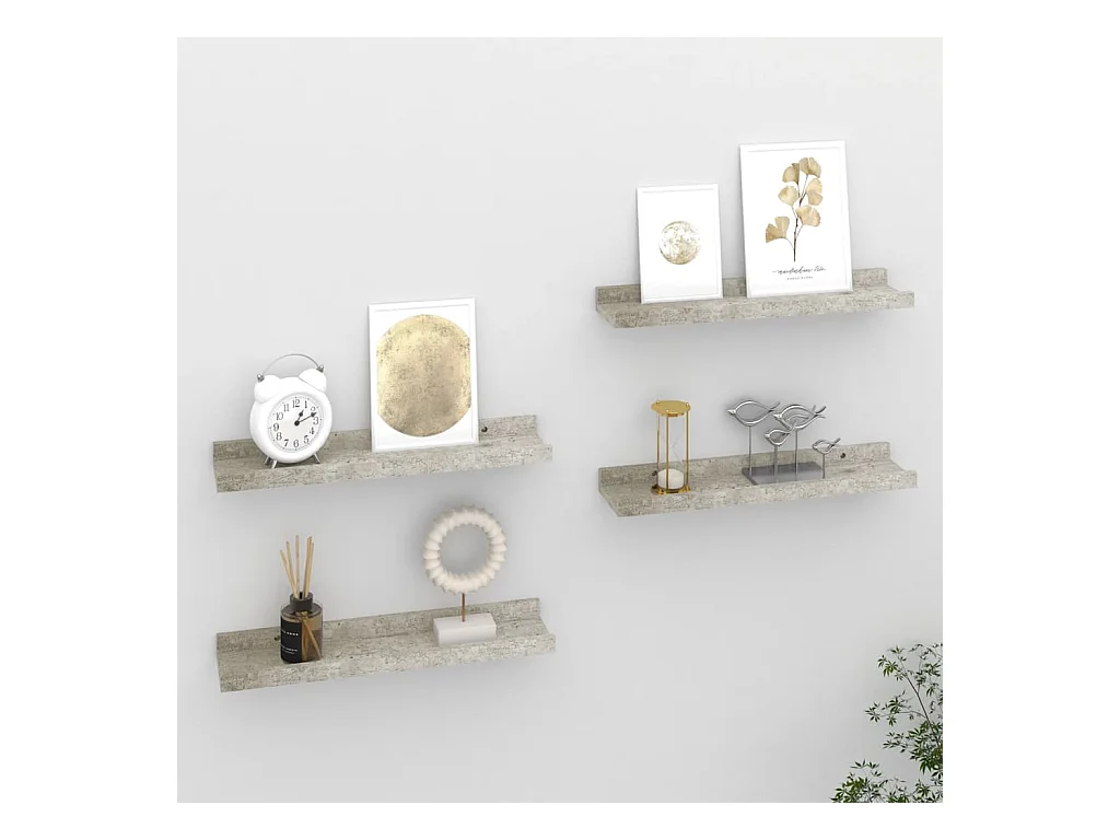 Mensole da parete 4 pezzi Grigio cemento 60x9x3 cm