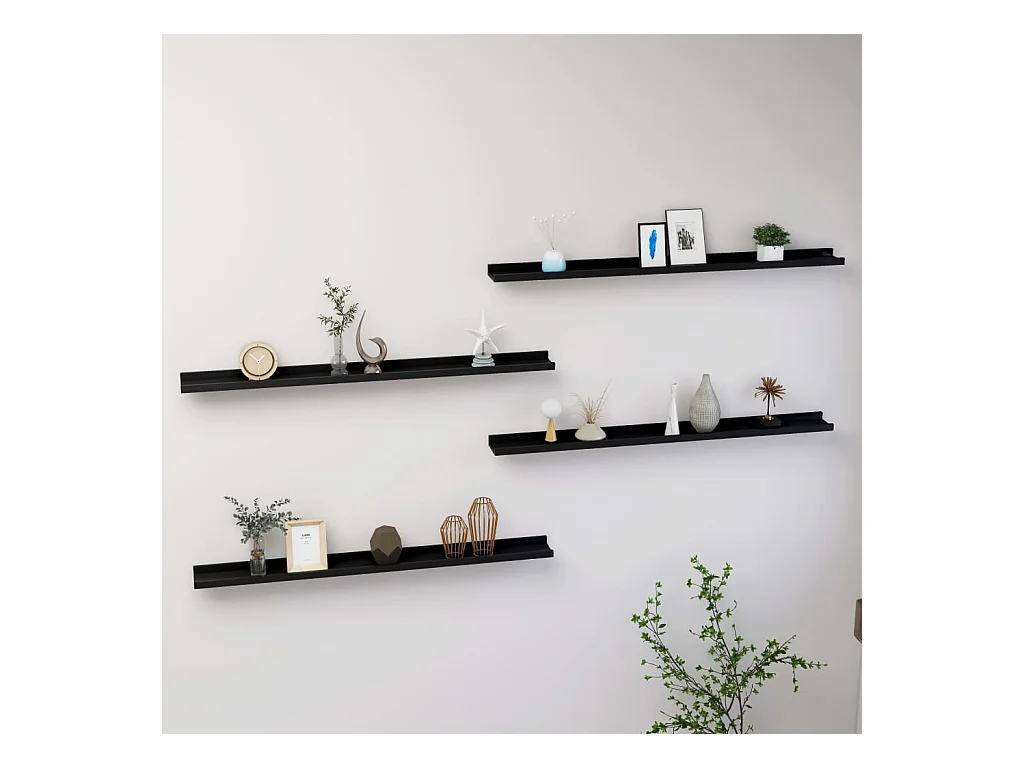 Mensole da parete 4 pezzi Nero 100x9x3 cm