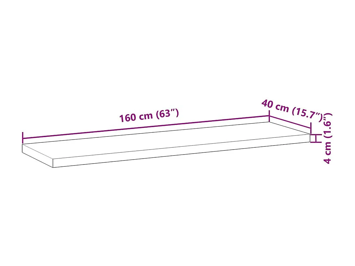 Ripiano a Parete 160x40x4 cm Legno Massello Acacia Non Trattato