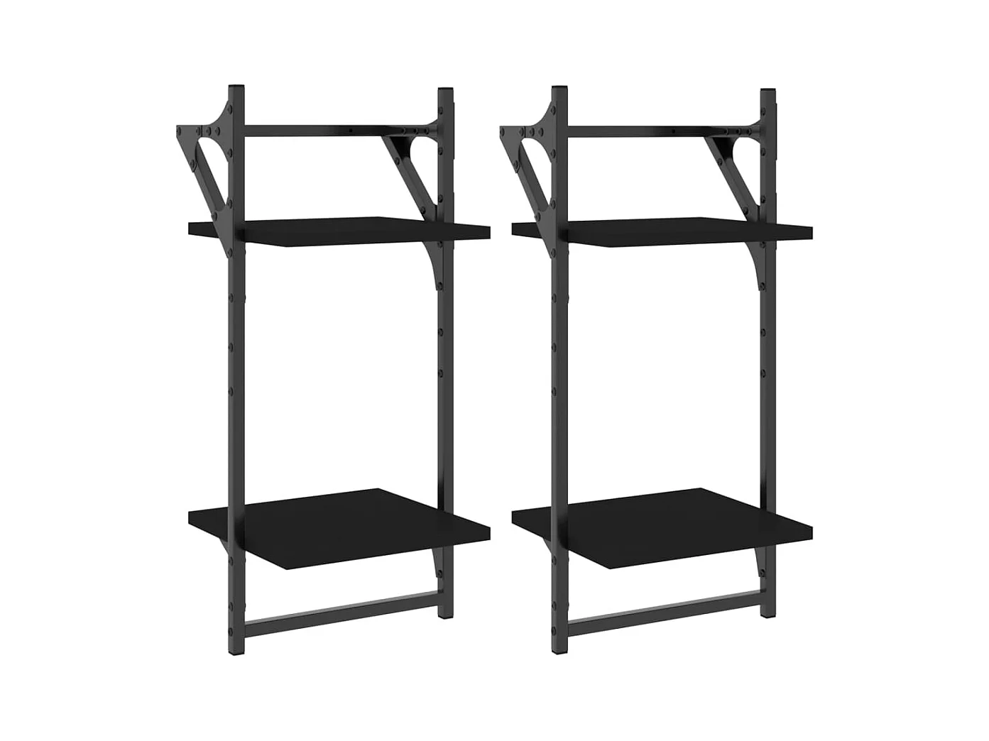Mensole da parete a 2 livelli con barre 2 pezzi nero 30x25x65 cm
