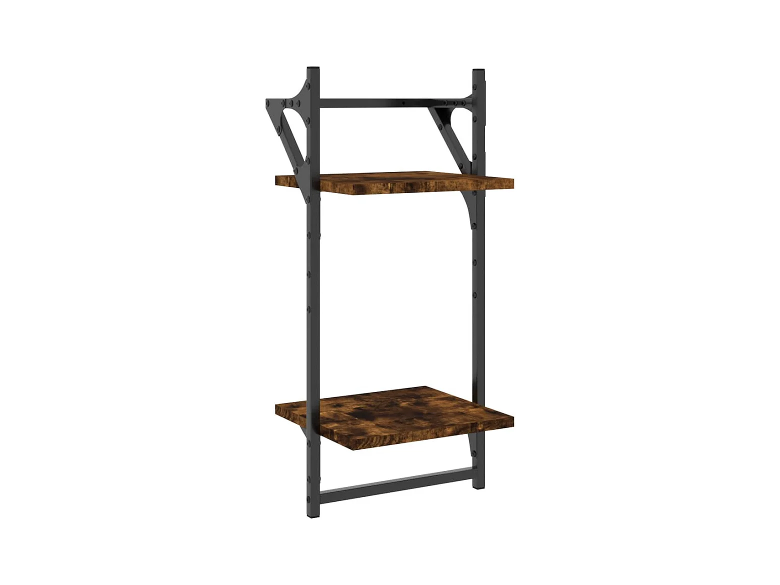Mensole da parete a 2 livelli con barre 2 pezzi rovere affumicato