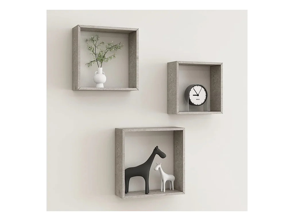 Mensole da parete a cubo da 3 pezzi, grigio cemento