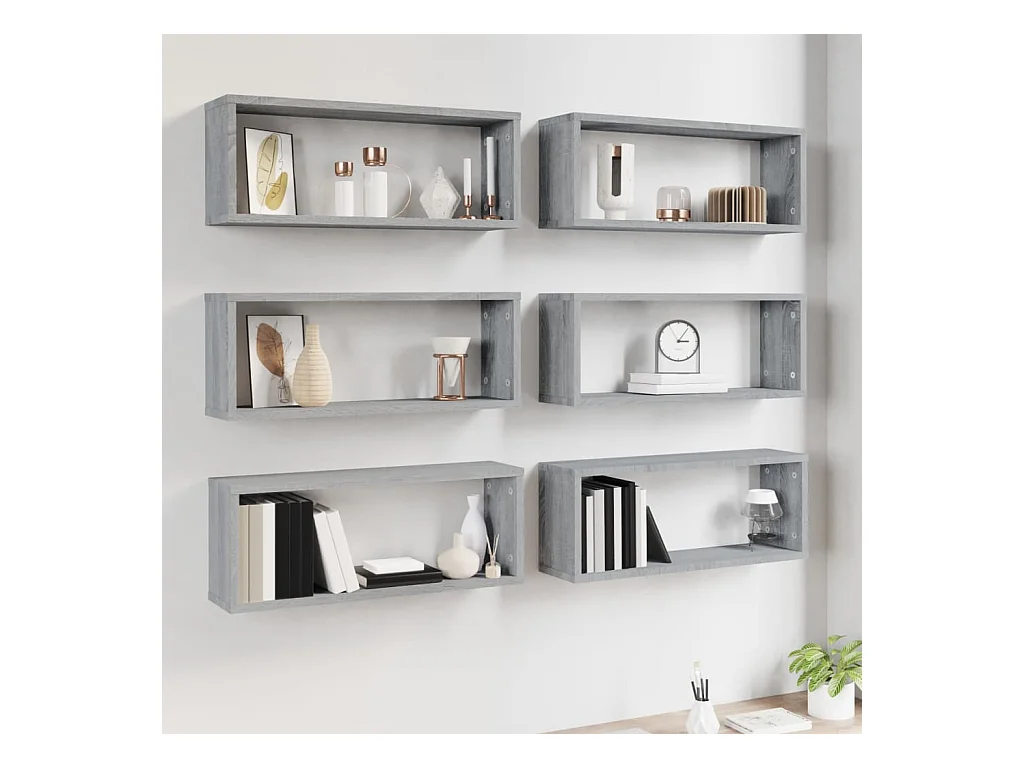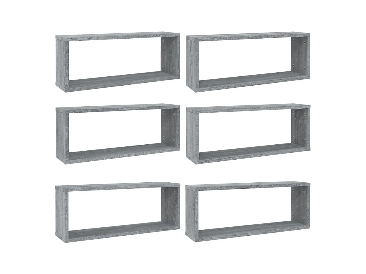 Mensole da parete cubo 6 pz Sonoma grigio 60x15x23 cm Legno