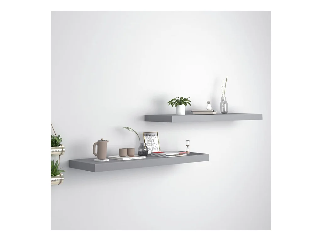 Mensola sospesa da parete 2 pezzi Grigio lucido 90x23,5x3,8 cm MDF